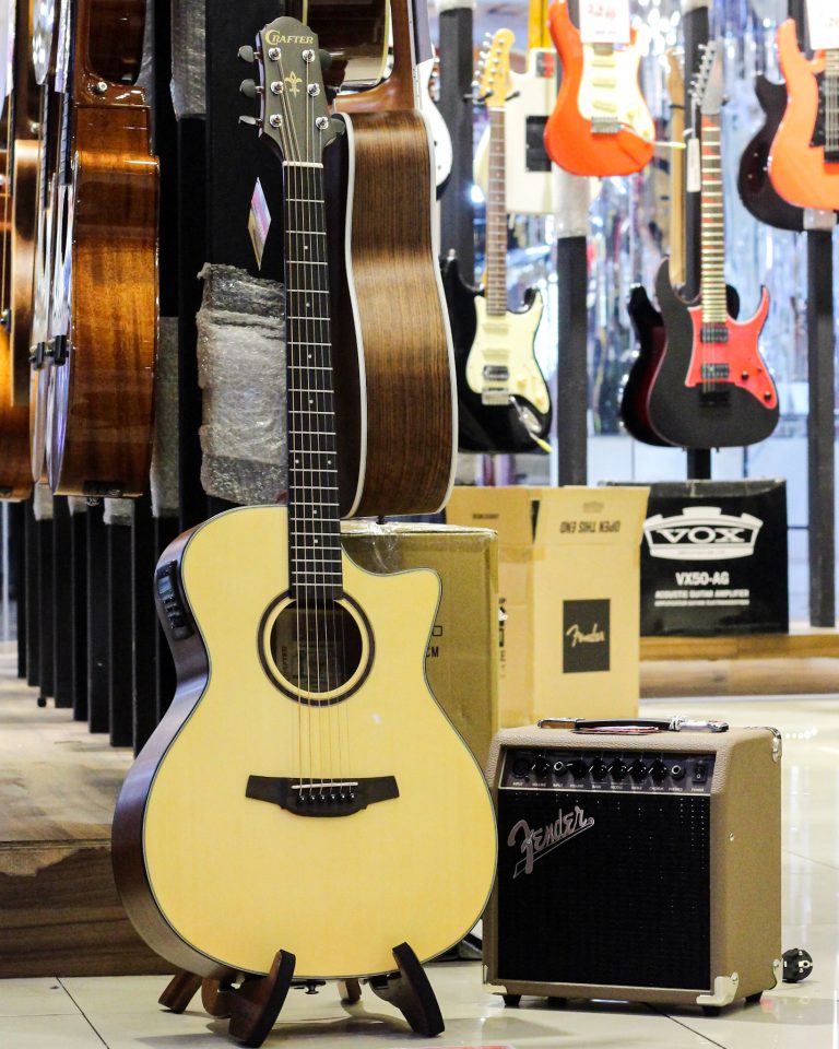 Crafter HT200 CE กีต้าร์สเป็คสวยๆจากแบรนด์ดังอย่าง Crafter บอดี้ทรงออเคสตร้ามีขาดเล็กเล่นง่าย ได้ไม้หน้าเป็นไม้สปรู๊ซให้เสียงใส นุ่มละมุน เสริมด้วยไม้ส่วนหลังและข้างเป็นไม้มะฮอกกานีที่ใช้กับกีต้าร์เกรดดีทั่วไป จึงได้ซาวด์ที่ลงตัวทั้งความหนาและความชัดเด้ง เช่นเดียวกับคอที่ใช้ไม้มะฮอกกานีอย่างดีแข็งแรงทนทาน ภาคไฟฟ้าเป็นรุ่น CR-T NV ที่มีจูนเนอร์ในตัวเป็นจอ LCD ขนาดเล็กมาให้ เอนกประสงค์และคุณภาพเยี่ยมแบบนี้ ไม่จับจองคงไม่ได้แล้ว