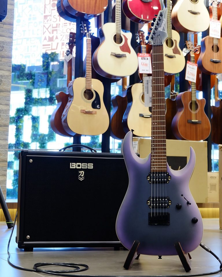 Ibanez RGA42EX-BAM กีต้าร์ดีไซน์สุดล้ำด้วยสีแบบดำเหลือบม่วง ทั้งตัวทำจากไม้ Meranti body ฟิงเกอร์บอร์ดเป็น Jatoba เฟรตแบบ Jumbo คอเป็นไม้เมเปิ้ล 3 ชิ้นประกบกัน เพื่อความแข็งแรง ทำทรง Wizard III คอบางจับง่าย ทั้งตัวมีน้ำหนักที่เบาจากการปรับปรุงของทาง Ibanez และปิ๊กอัพนั้นได้นำรุ่น Quantum (H) pickup เข้ามาใส่ ไม่ว่าจะเป็นแนวร็อคหรือเเจ๊สก็สามารถเล่นได้อย่างอิสระ
