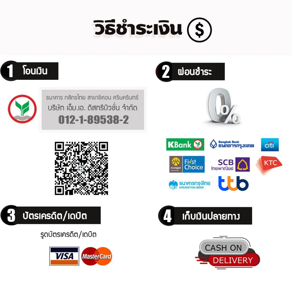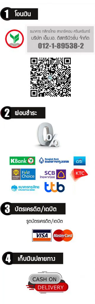 นโยบายการรับประกันและการคืนสินค้านี้ จัดทำขึ้นโดย บริษัท เอ็ม.เอ. ดิสทริบิวชั่น จำกัด