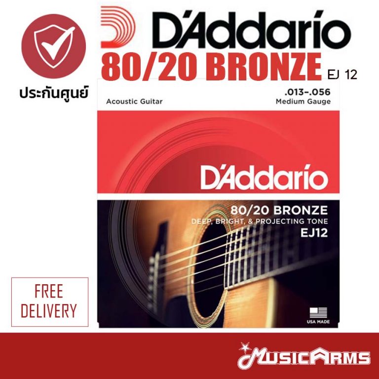 สายกีตาร์โปร่ง D’Addario EJ12 สายกีต้าร์โปร่งยี่ห้อที่คุ้นหูชาวไทยกันอย่างนี้ รุ่นนี้จะเป็นสายขนาด .013-.056 ซึ่งมีขนาดเล็กไม่ต่างจากกีต้าร์ไฟฟ้า จึงเล่นง่ายสบายนิ้ว ให้บาลานซ์เสียงที่ดีเยี่ยม โทนเสียงกังวานทำจากโลหะสตีล เคลือบด้วยทองแดง เหมาะสำหรับผู้ที่ต้องการสายกีต้าร์ให้เสียงดีๆ และเล่นไม่เจ็บนิ้วไว้ใช้งาน