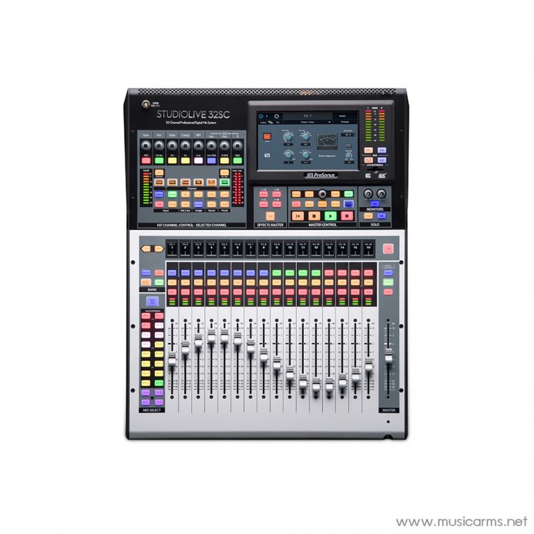 PreSonus StudioLive 32SC เป็นดิจิตอลมิกเซอร์ 32 แชนเนลขนาดกะทัดรัดที่สามารถติดตั้งในชั้นวางได้ มาพร้อม PreSonus FLEX DSP Engine แบบดูโอ้คอร์ ช่วยให้การทำงานไหลลื่นรวดเร็ว 40 ช่องสัญญาณผสม 26 บัส รองรับการทำเพลงแบบเต็มสูบ โดยจะมีช่องต่อหลักๆอย่างไมโครโฟน, Line หูฟัง และจะมีช่องต่อแบบ Tape มาให้ด้วย คุณภาพเสียงระดับสตูดิโอ สามารถสร้างสตูดิโอทำเพลงผ่านมือถือเพียงเครื่องเดียวได้