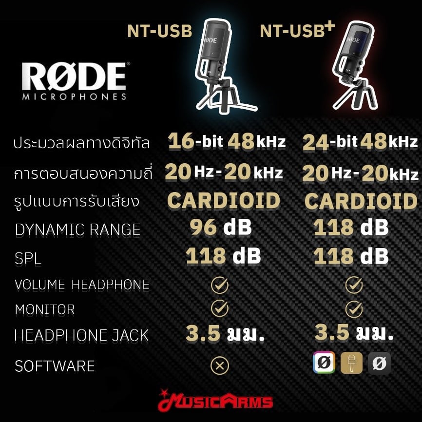 ตารางเปรียบเทียบ RODE NT-USB กับ RODE NT-USB+