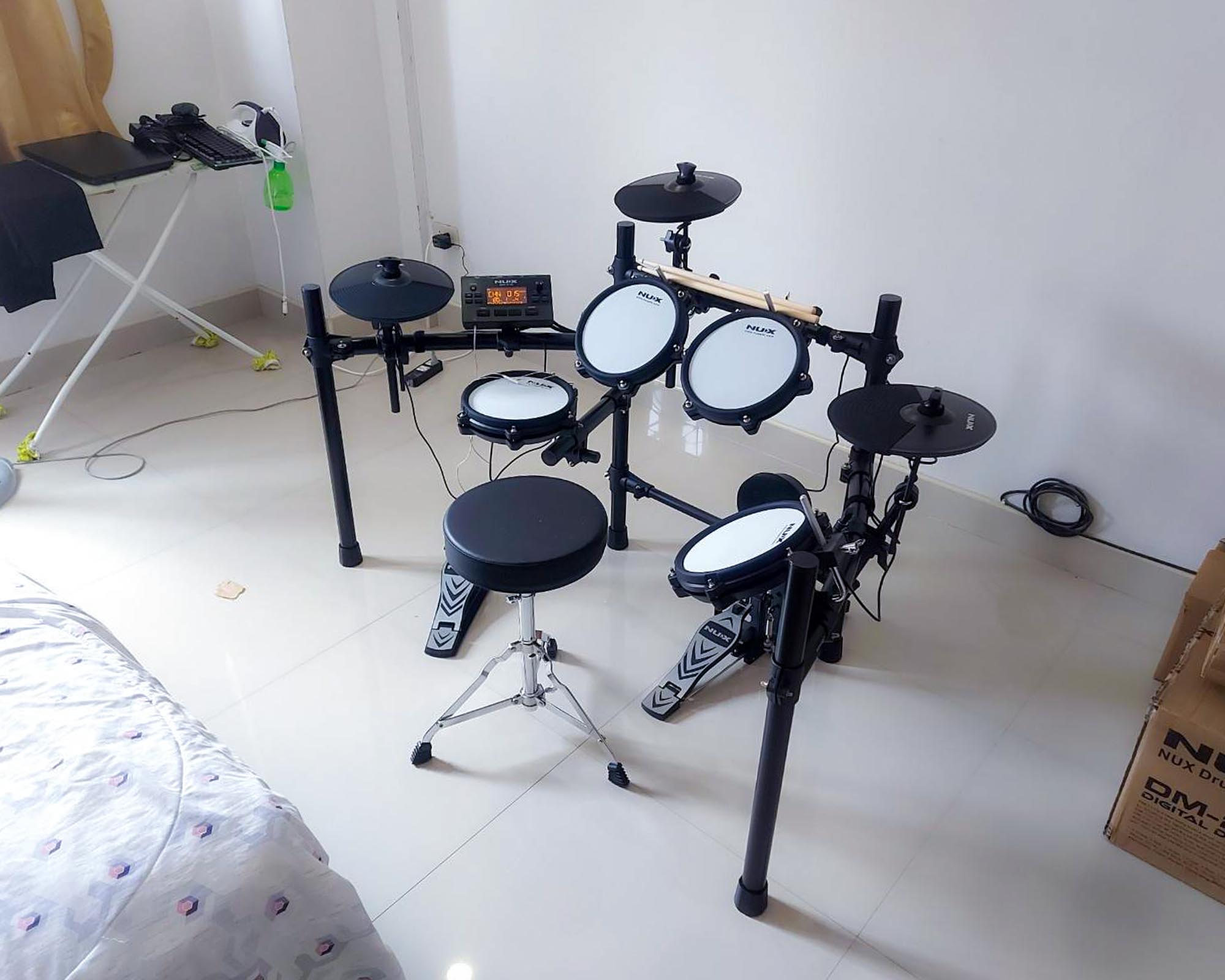 กลองไฟฟ้า Nux DM-210 ชุดสุดคุ้มที่ได้ทั้งการซ้อม, เรียน และบันทึกเสียงในตัวเดียว จบปัญหาการมีพื้นที่ไม่พอจะวางกลองชุด หรือเสียงรบกวนเพื่อนบ้าน แป้นกลองมีขนาดใหญ่มาก ไม่ว่าจะเป็นสแนร์ขนาด 8 นิ้ว หรือฉาบขนาด 10 นิ้ว นอกจากนี้ยังมีกลองทอมขนาด 8 นิ้วถึง 3 แพด รองรับดนตรีทุกรูปแบบ โดยที่จะมีตัวควบคุมไฮแฮทและกระเดื่องมาให้ด้วย และตัวกลองทุกชิ้นจะเป็นหนังมุ้ง