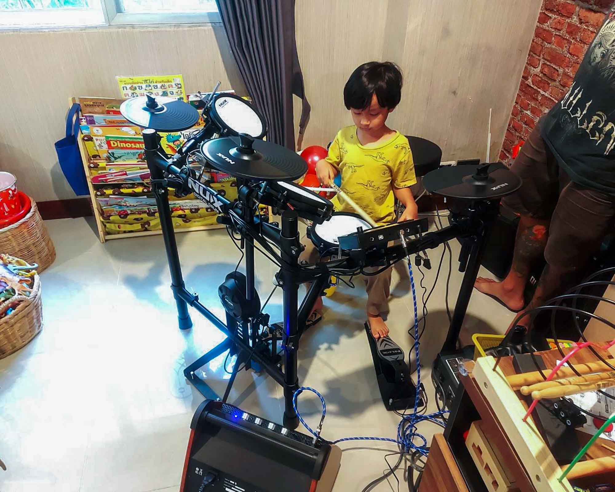 This drum set doesn’t need much space – just 1.5 square meters ! That’s it ! Place it anywhere you want. You can practice in your room and then move it to the living room for the big performance.You can easily move it outdoors for backyard parties. It’s unbelievably lightweight so just about anyone can move it with ease.
