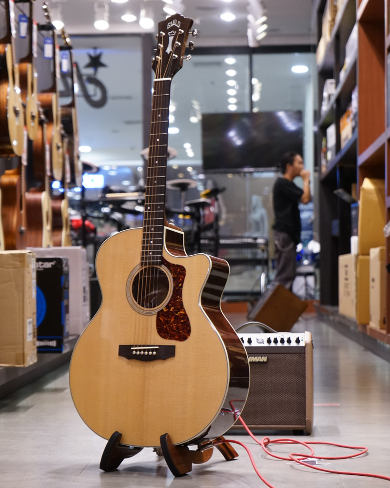 Guild F-150CE กีต้าร์โปร่งไฟฟ้าที่ทำจากไม้แท้ทั้งตัว รุ่นนี้เป็นทรงจัมโบ้ที่ไม้หน้าทำจากไม้สปรู๊ซที่เน้นในเนื้อเสียงที่มีความใสกังวาน เสริมความหนานุ่ม คมชัดด้วไม้ข้างเเละหลังจากไม้โรสวู้ด ด้วยความที่เป็นทรงจัมโบ้จึงทำให้เนื้อเสียงมีความละมุ่นเพิ่มขึ้น มาพร้อมกับปิ๊กอัพไไฟ้าจาก Fishman เเบรนด์ชื่อดังที่มีเอกลักษณ์โดดเด่น สามารถปรับเสียงเบสให้มีความหนาได้ตามต้องการ ดีไซน์ปิ๊กอัพไว้ภายในตัวกีต้าร์ จึงทำให้ภายนอกดูมีความเรียบหรูสวยงาม คุ้มค่ากับราคา รับรองไม่ผิดหวังเเน่นอนสำหรับรุ่นนี้ เเนะนำเลย