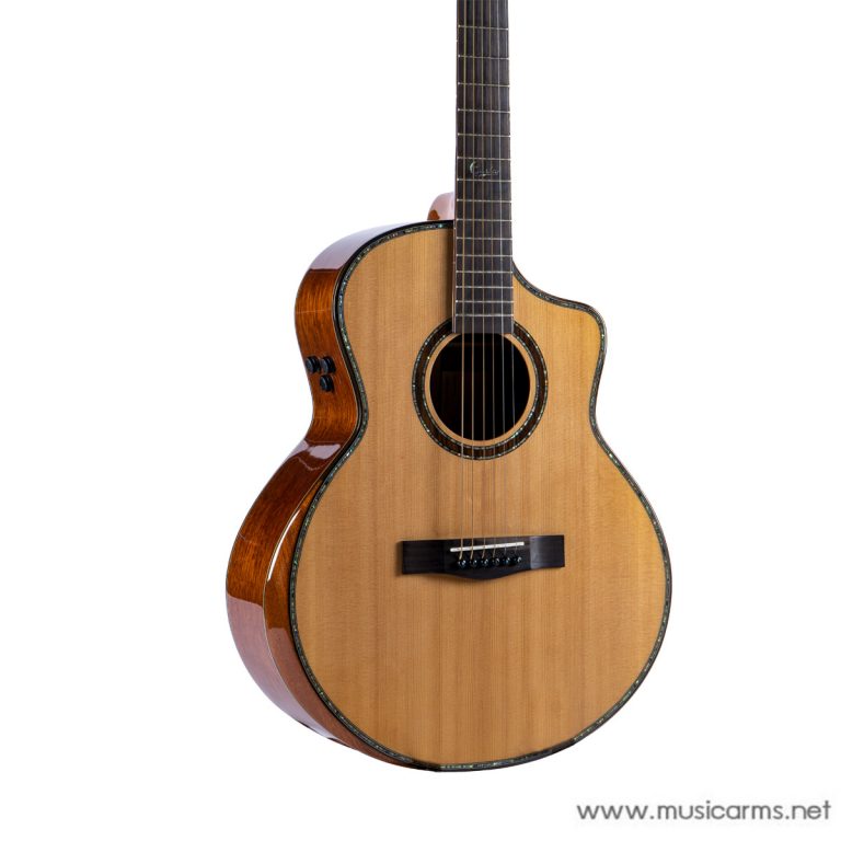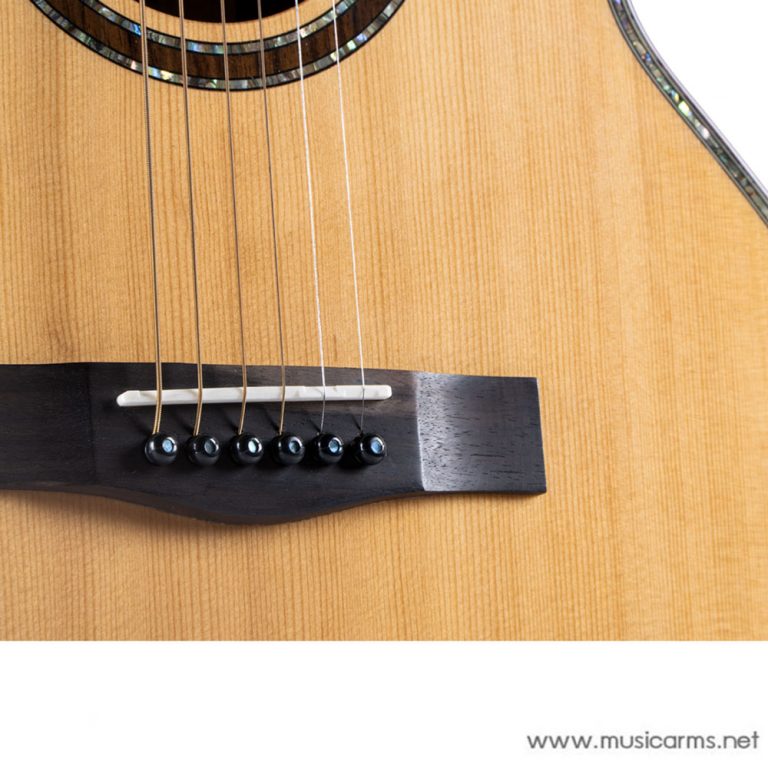 เป็นกีต้าร์ All Solid ทั้งทีงานอะไหล่ต้องมีความเนี๊ยบตามด้วย ไม่ว่าจะเป็นนัทและแซดเดิ้ลที่ทำจากกระดูก รวมถึงขอบไบน์ดิ้งและซาวด์โฮลทำลายเปลือกหอยมาให้สวยงามดูโอ่อ่า ลูกบิดวินเทจ เคลือบเงาให้อย่างดี สำหรับรุ่นนี้จะมีภาคไฟฟ้าในตัว เป็นปิ๊กอัพรุ่น Fishman FLEX Plus ให้เสียงไฟฟ้าที่ใส กังวาน ได้ซาวด์เป็นธรรมชาติ เรียกว่าครบเครื่องกว่าที่เคยมีมาในราคาจับต้องได้จริงๆ