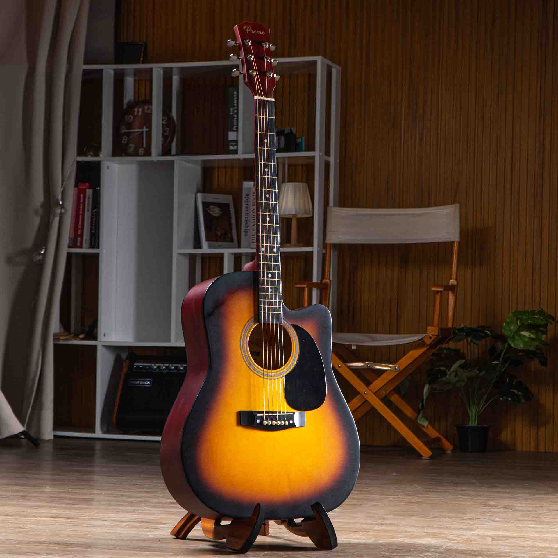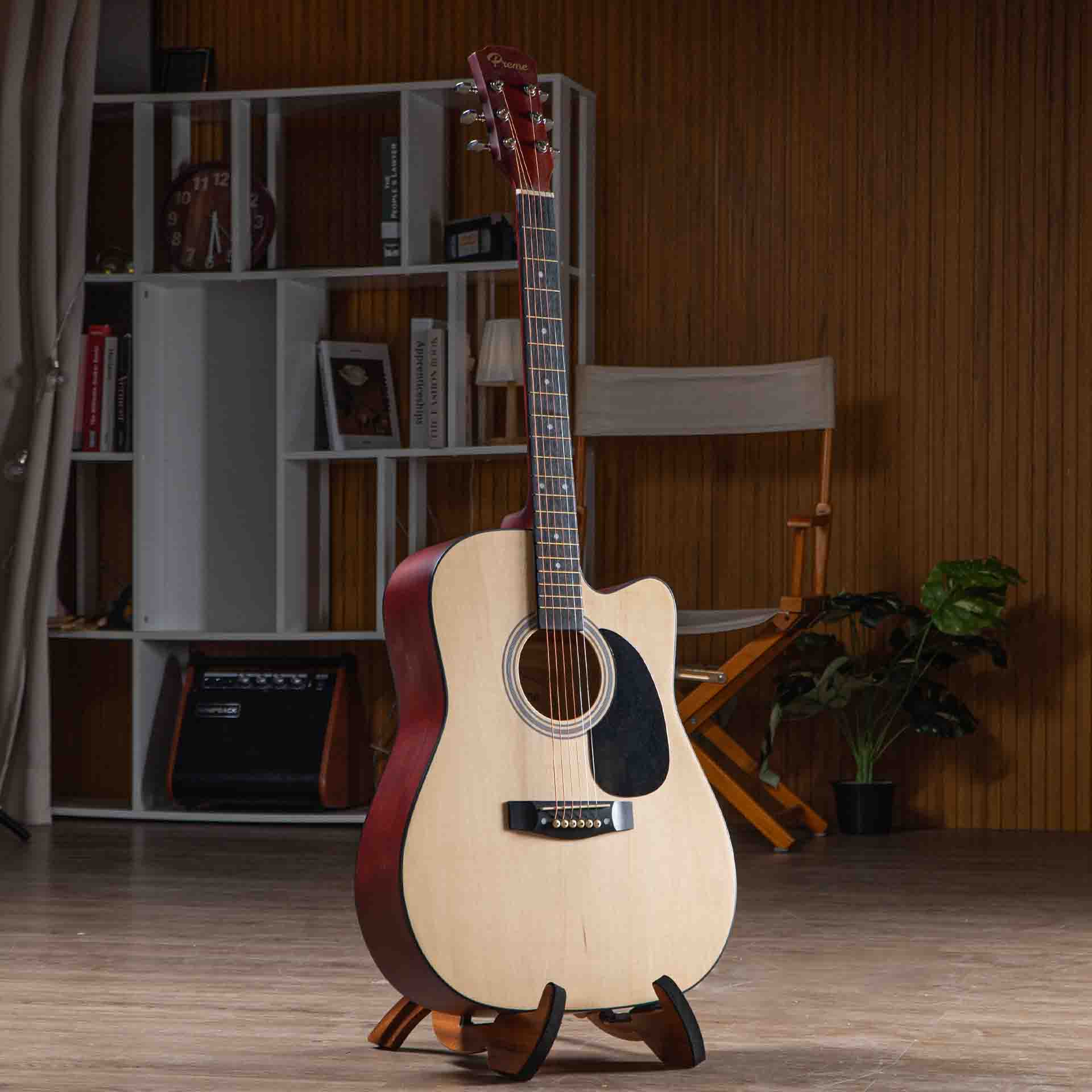 กีต้าร์โปร่ง Preme G419 กีต้าร์สำหรับเริ่มต้นในราคาเบาๆ ได้เสียงดีสุดคุ้ม บอดี้นั้นเป็นทรงเดรทน็อตแบบคอเว้า สวยงามและได้เสียงเบสแน่นๆ บอดี้และคอทำจากไม้ลินเดน เป็นไม้ที่ให้โทนเสียงกลางดี ซาวด์พุ่ง เล่นได้ไม่ว่าจะตีคอร์ดหรือฟิงเกอร์สไตล์ ฟิงเกอร์บอร์ดทำจากไม้โรสวู้ดตามมาตรฐานกีต้าร์ทั่วไป ถือเป็นหนึ่งในกีต้าร์สำหรับผู้เริ่มต้นที่ราคาย่อมเยากว่าแบรนด์อื่นๆค่อนข้างมาก ใครที่กำลังมองหากีต้าร์หัดเล่น หรือกีต้าร์ที่ได้เสียงมาตรฐานดีๆในราคาที่ถูกเหลือเชื่อ ขอบอกว่ายี่ห้อนี้รุ่นนี้แหละคือคำตอบ