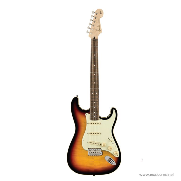 กีต้าร์ไฟฟ้า Fender Aerodyne Classic Stratocaster Flame Maple Top กีต้าร์รุ่นลิมิเต็ดที่มีความพิเศษคือใช้ไม้เฟรมเมเปิ้ลปะหน้า ตัวบอดี้นั้นเป็นไม้เบสวู้ดเสียงน่นๆ เมื่อมีไม้เฟรมจะช่วยเพิ่มเสียงกลางให้โดดเด่นยิ่งขึ้นและลายไม้สวยงาม คอเมเปิ้ลและฟิงเกอร์บอร์ดโรสวู้ด ซาวด์เด้งชัดเป็นเม็ด ปิ๊กอัพทั้ง 3 ตำแหน่งเป็นรุ่น Standard Single-Coil Strat เสียงโทนใสดีเยี่ยม เสียงกลางชัด งานอะไหล่ดี ประกอบสวย ใครที่ชอบกีต้าร์แนววินเทจนิดๆกับราคาที่ไม่แรงเกินไปและยังเป็นแบรนด์ระดับโลก ถือว่าน่าสอยอย่างมาก