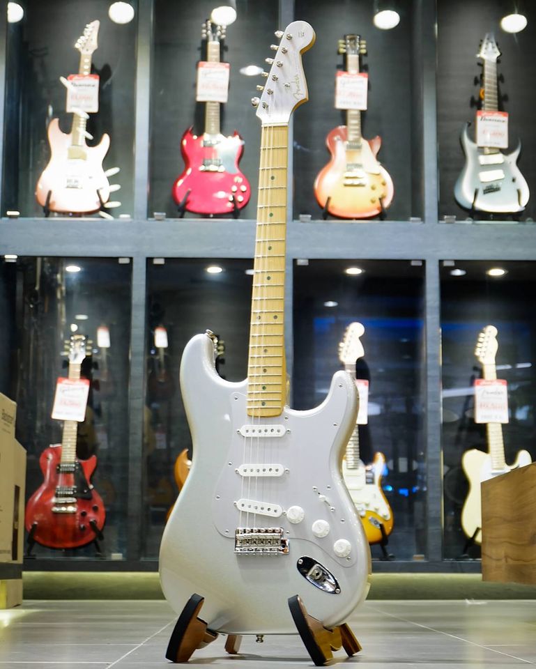 กีต้าร์ไฟฟ้า Fender H.E.R. Stratocaster H.E.R. มือกีต้าร์ R&B เป็นศิลปินสร้างเเรงบันดาลใจของรุ่น H.E.R. Stratocaster นี้ บอดี้เป็นไม้เอลเดอร์เด้งๆ ตกแต่งด้วยสีแบบ Chrome Glow สีที่ไม่เหมือนใครและมีคอเมเปิ้ลแบบตัว “C” ที่ทำให้ดูวินเทจเหมือนย้อนกลับไปในช่วงกลางทศวรรษที่ 60 ปิ๊กอัพเป็น Vintage Noiseless แบบ SSS หรือ single coil 3 ตำแหน่ง โดยรูปลักษณ์ทำให้ดูแบบวินเทจแต่เสียงกลับอวลไปด้วยเอกลักษณ์ของ Fender