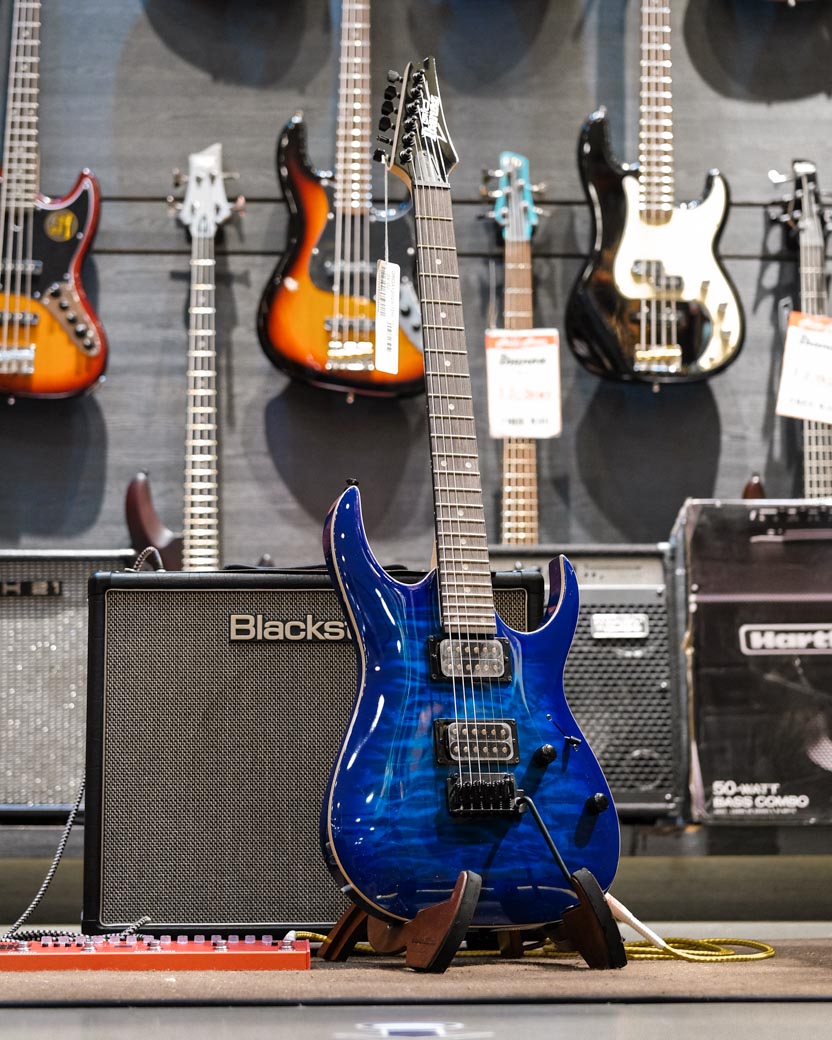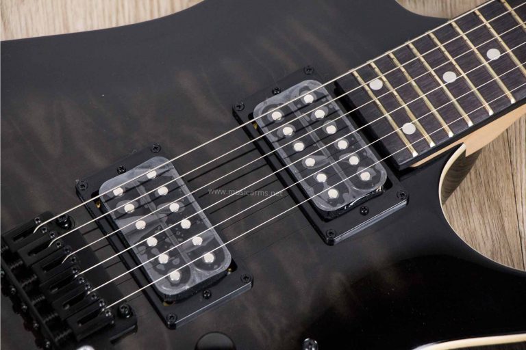 A guitar is only as playable as its neck — good thing the Ibanez GRGA120QA has a smooth and fast-playing maple neck. This comfortable neck is capped by a bound purpleheart fingerboard with a super-flat 15.7″ radius and 24 jumbo frets, giving you the agility to execute fast single-note runs with ease.