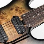 The long awaited Sterling by Music Man Jason Richardson 7-String Cutlass has finally arrived — engineered specifically to meet the demands of Jason Richardson’s technique, the ‘Richardson7’ features a custom contoured lower horn for fret access, roasted maple neck with rosewood fretboard, and highly figured Poplar Burl top. It offers high output Sterling by Music Man designed humbuckers, a 12dB “PushPush” volume boost, coil-tap “Push-Push” tone control, and Modern Tremolo. Available in Natural Poplar Burst.