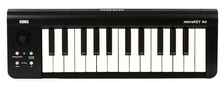 Korg MicroKey2 25 Air คีย์บอร์ดขนาดพกพาที่ให้จำนวนแป้นคีย์ 25 แป้น และยังเป็นแบบ Natural Touch ให้สัมผัสเหมือนเล่นเปียโนจริง ช่องคีย์จะเป็นแบบมินิเหมาะสำหรับเด็กและผู้หญิงที่มีนิ้วมือค่อนข้างเล็ก ด้านซ้ายมือจะเป็นปุ่มควบคุม Pitchbend และ Mod Wheel สามารถดันขึ้นลงทำเสียง Vibrato หรือเสียงสั่นเป็นลูกเล่นได้ด้วย และยังมีปุ่ม Shift Octave สำหรับเพิ่มอ็อคเตปให้อีกด้วย สามารถเชื่อมต่อกับเข้าระบบปฏิบัติการ iOS และ Android ได้ทาง Bluetooth รวมถึงการเชื่อมต่อกับคอมพิวเตอร์ได้อีกด้วย จึงเพิ่มประสิทธิภาพเรื่องการทำเพลงมาเต็มรูปแบบ เหมาะสำหรับผู้ที่ต้องเดินทางไปฝึกซ้อมอยู่เป็นประจำ