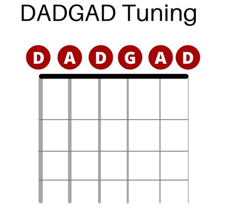DADGAD Tuning เริ่มได้รับความนิยมมากตั้งแต่ช่วงปี 60’ โดยมือกีตาร์ชาวอังกฤษ Davey Graham ซึ่งถือเป็นบุคคุลที่เป็นแรงบรรดารใจให้กับมือกีตาร์ระดับโลกอย่าง Jimmy Page หลังจากนั้นตัว Jimmy Page เองก็ได้นำการตั้งสายแบบ DADGAD Tuning มาใช้ในผลงานของตัวเองด้วยเช่นในเพลง White Summer – Led Zeppelin , Kashmir – Led Zeppelin เป็นต้น ซึ่งการตั้งสายแบบนี้จะให้เสียงที่มีความหม่นหมอง และมิติที่ลึก มีวิธีการจับคอร์ดที่ง่ายดายโดยใช้นิ้วเพียงไม่กี่นิ้วในการกดลงบนสายก็สามารถเป็นคอร์ดได้แล้ว โดยคอร์ดพื้นฐานที่นิยมก็จะมีเป็นดังนี้