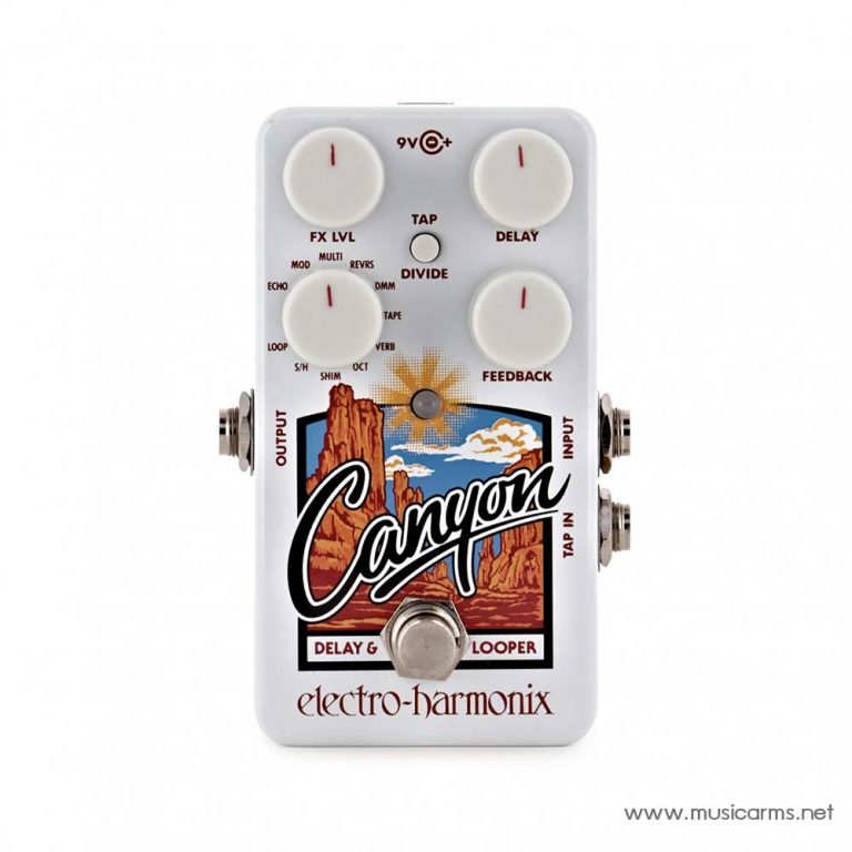 Electro-Harmonix Canyon Delay & Looper เอฟเฟคกีตาร์ มีดีเลย์หลากหลายประเภทและลูปในตัว ด้วยการหน่วงเวลาที่แตกต่างกัน 10 แบบเพียงปลายนิ้วสัมผัส เปลี่ยนโทนเสียงของคุณให้กลายเป็นจินตนาการ สามารถเลือก Echo; การหน่วงเวลาแบบดิจิทัลอย่างง่ายซึ่งทำซ้ำแต่ละโน้ตในลักษณะเดียวกัน โดยค่อยๆ ลดปริมาณลง หรือเลือกบางอย่างที่พิเศษกว่าเล็กน้อย เช่น Shimmer delay ซึ่งสร้างคลื่นของโน้ตที่เปลี่ยนระดับเสียงซ้ำๆ เพื่อให้ได้โทนเสียงที่หนักแน่นและหนักแน่น และยังมีอีกมากมาย ซึ่งแต่ละแบบก็มีคุณสมบัติเฉพาะตัวที่แตกต่างกันไป