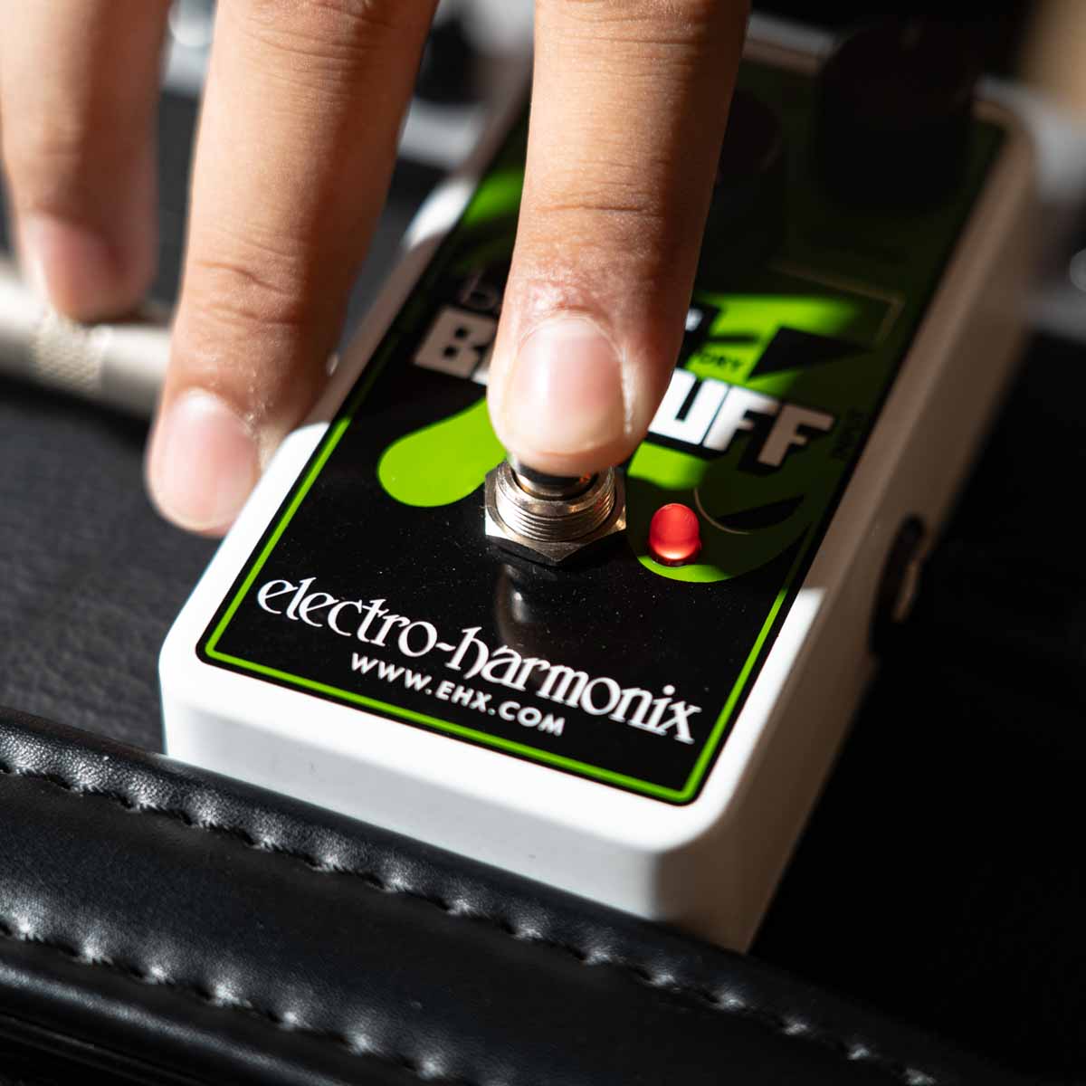 - Dry Switch: Features a dedicated Dry switch that mixes your dry bass signal, at unity level, with the Nano Bass Big Muff’s distortion, ensuring bass definition.