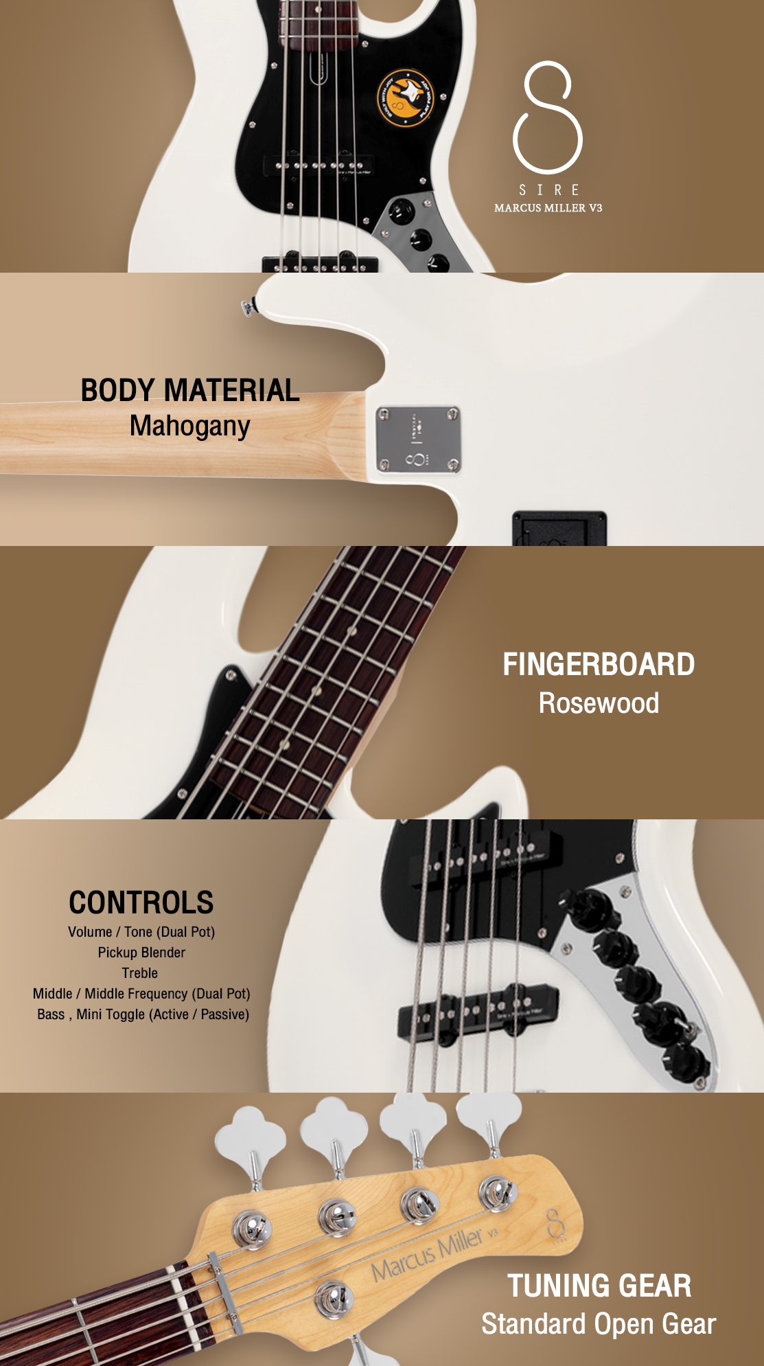 เบสที่มีความพิเศษในการปรับแบบ Passive และ Active ในตัว ซึ่งรุ่นนี้จะเป็นแบบ 5 สาย และสามารถปรับเสียงกลางรวมถึงเสียงแหลมได้ด้วย วัสดุไม้จะเน้นเสียงที่หนา นุ่มลึก บอดี้ไม้มะฮอกกานี คอเมเปิ้ล ฟิงเกอร์บอร์ดโรสวู้ด ซาวด์แน่นเดินเบสชัด มาพร้อมปิ๊กอัพ Marcus Standard J-Revolution Set ที่ตอบโจทย์ดนตรีทุกแนวเพลง ใครที่ชอบเบสแบบปรับซาวด์ได้ หรือเน้นความแรงในแบบ Active ได้รุ่นนี้ไปตัวเดียวจบเล่นได้ทุกเพลง