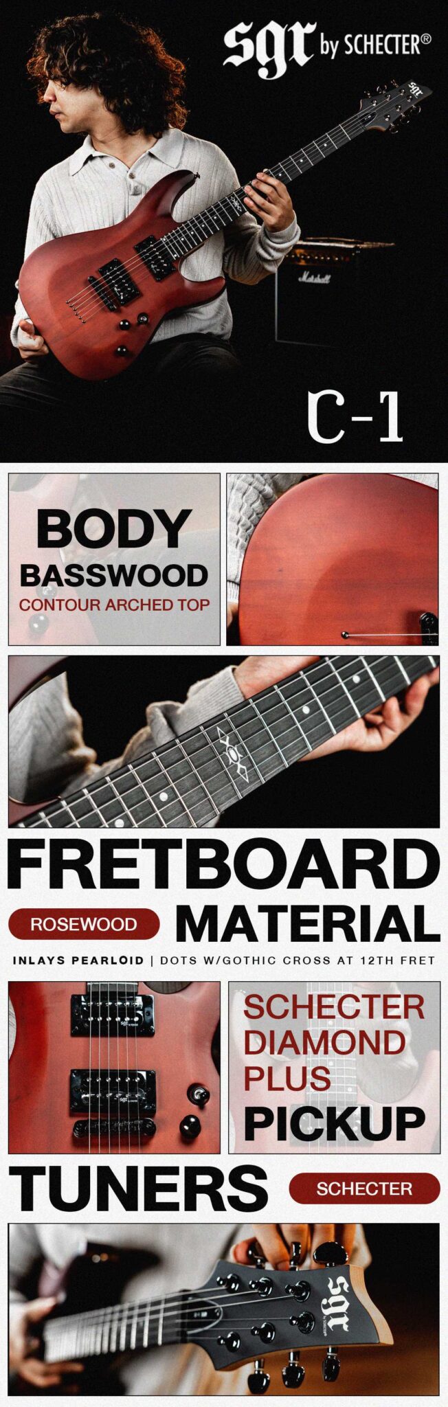รายละเอียดคุณสมบัติ :  รายละเอียดกีต้าร์ SGR by Schecter C-1