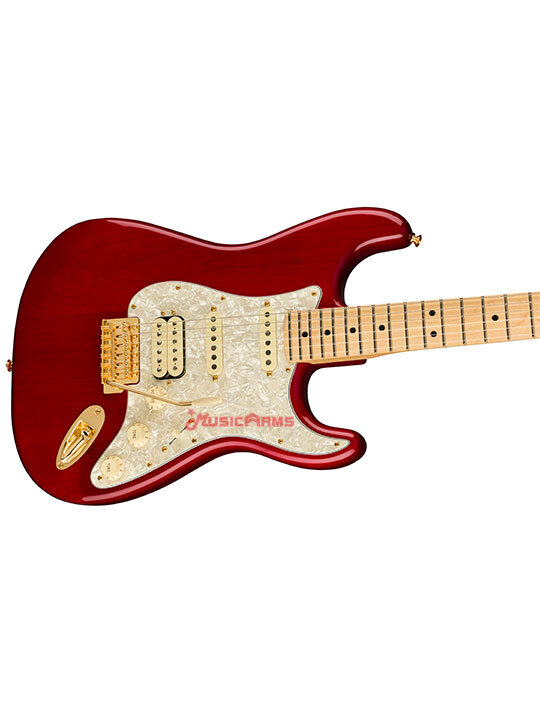 - Eye-catching 3-ply aged white pearl pickguard, gold hardware, and matching headstock