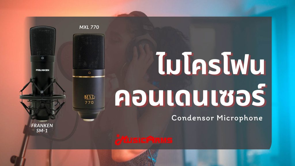 2.ไมโครโฟน คอนเดนเซอร์ (Condensor Microphone) ไมค์ชนิดนี้จะใช้คอนเดนเซอร์เป็นตัวสร้างความถี่เพื่อทำให้เกิดสัญญาณไฟฟ้า โดยเมื่อเราส่งเสียงผ่านเข้าสู่ไมโครโฟนจะทำให้ไดอะแฟรมด้านในเคลื่อนที่ทำให้เกิดระยะห่างระหว่างแผ่นและโลหะเปลี่ยนแปลง เกิดขึ้นเป็นสัญญาณไฟฟ้าที่เปลี่ยนแปลงไปตามระดับความดังของเสียงที่เราปล่อยเข้าไปไมค์คอนเดนเซอร์ นี้จะเป็นไมโครโฟนที่ต้องอาศัยไฟในการเลี้ยงวรจรของแบตเตอรี่ โดยข้อดีของไมค์ชนิดนี้คือสามารถรับเสียงคลื่นความถี่ได้สูง มีค่าอิมพิแดนซ์ Impedance ที่ต่ำจึงตอบสนองต่อเสียงได้ไว โดยไมโครโฟนคอนเดอเซอร์ นี้จะเหมาะสำหรับงานที่ใช้ในสตูดิโอ และยังสามารถเป็นไมค์ที่นำไปใช้อัดเสียงเครื่องดนตรีด้วยได้ ยกตัวอย่างไมค์คอนเดนเซอร์ ดังนี้ MXL 770, Franken SM-1 Studio เป็นต้น
