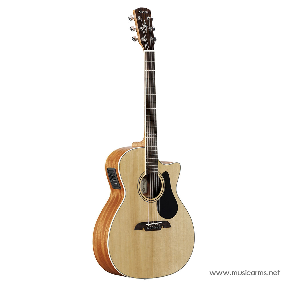 Alvarez AG60CE กีตาร์โปร่งไฟฟ้าทรงแกรนด์ออดิทอเรียมที่มีขนาดบอดี้ไม่ใหญ่มาก เล่นสบายมือกว่าเดิม และยังเหมาะทั้งการตีคอร์ดหนักๆหรือเล่นแบบฟิงเกอร์สไตล์ รุ่นนี้ครบเครื่องกับไม้หน้าแท้ท็อปโซลิดซิทกาสปรูซที่คัดเกรดกันมาแล้วอย่างดี ให้โทนเสียงใส เสียงกลางโดดเด่น ด้านข้างและหลังเป็นไม้มะฮอกกานี เสริมมิติเสียงให้มีความหนานุ่มละมุนมากขึ้น งานอะไหล่ยอดเยี่ยม เช่นนัทและแซดเดิ้ลที่ทำจากกระดูกหรือตกแต่งขอบไบน์ดิ้งมาให้สวยงาม และยังได้ภาคไฟฟ้าเป็นรุ่น EQLR Baggs StagePro EQ เสียงดีออกงานสบายๆ หากใครยังไม่เคยสัมผัสแบรนด์นี้อยากให้มาลองของดี