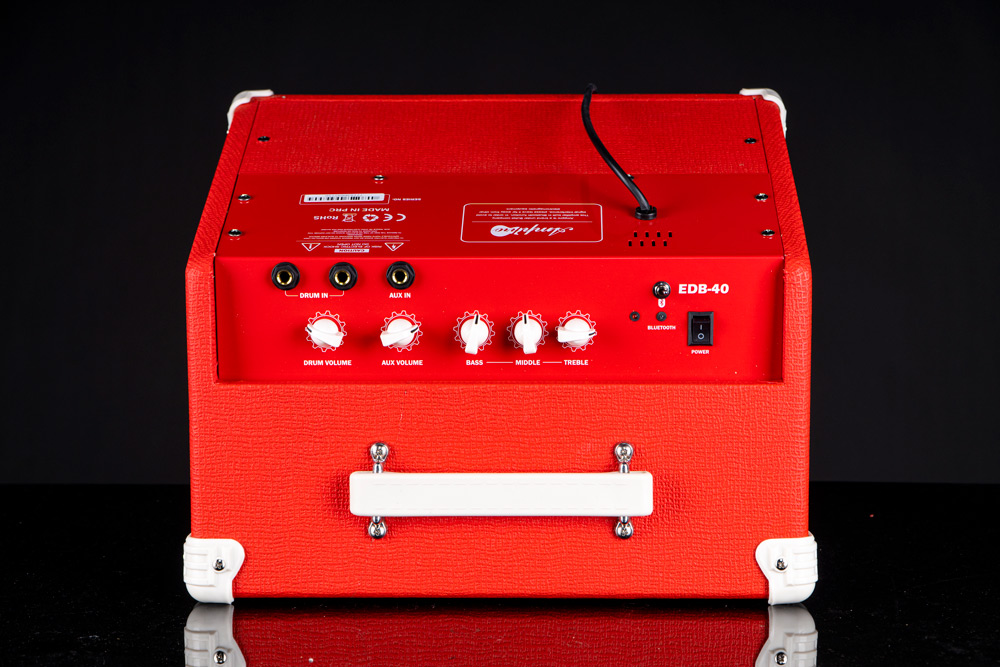 Amppro EDB-40 แอมป์กลองสำหรับใช้กับกลองไฟฟ้า รุ่นนี้จะมีกำลังขับ 40 วัตต์ สามารถใช้ในห้องสตูดิโอหรือเวทีมินิคอนเสิร์ตได้สบายๆ ซาวด์ชัดด้วยลำโพงขนาด 8 นิ้ว และมีทวีตเตอร์ขนาด 1 นิ้ว เพิ่มความถี่ย่านเสียงแหลมให้ด้วย กำลังขับมากถึง 40 วัตต์ พิเศษด้วยการเชื่อมต่อผ่าน Bluetooth รวมถึง Aux in ควบคุมง่ายด้วยปุ่มคอนโทรลหน้าตู่ที่สามารถปรับ EQ ได้ 3 ย่านเสียง ขนาดพกพาได้ พร้อมลุยไปทุกที่