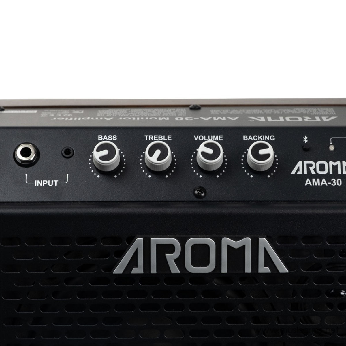 Aroma AMA-30 คือแอมพลิฟายเออร์มอนิเตอร์สำหรับเครื่องดนตรีอเนกประสงค์ขนาด 30 วัตต์ ที่รวมเอาความกะทัดรัดเข้ากับกำลังขับที่เพียงพอสำหรับการใช้งานส่วนตัวและการแสดงในสถานที่ขนาดเล็ก แอมป์รุ่นนี้ได้รับการออกแบบมาเป็นพิเศษเพื่อให้เสียงที่มีความโปร่งใสและครอบคลุมทุกย่านความถี่อย่างแม่นยำ เหมาะอย่างยิ่งสำหรับการมอนิเตอร์กลองไฟฟ้า คีย์บอร์ด กีตาร์ และเครื่องดนตรีอิเล็กทรอนิกส์อื่น ๆ ด้วยการรองรับอินพุตคู่และการเชื่อมต่อ Bluetooth 5.0 ทำให้คุณสามารถเสียบเครื่องดนตรีและเปิดเพลงประกอบพร้อมกันได้อย่างง่ายดาย