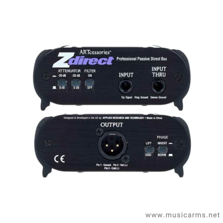 ไดเร็คบ๊อกแบบ Passive Direct Box ART ZDirect Fully passive, high performance transformer design. No battery required, Switchable input (0, -20, -40 dB), Converts 50k ohm inputs into 600 ohm balanced outputs, Switchable phase invert, XLR connectors for balanced outputs