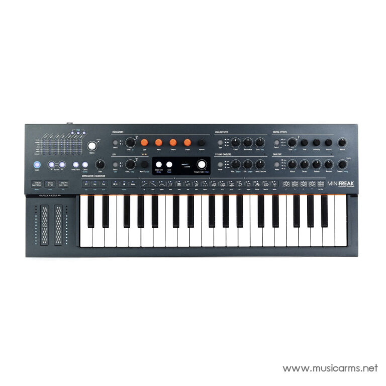 ด้วยคีย์บอร์ด Slimkey ไวต่อแรงสัมผัส 37 โน้ต MiniFreak มาพร้อมกับ Aftertouch, การจัดลำดับ/Arpeggiation แบบเกิดขึ้นเอง และชุดการสุ่มแบบต่างๆ ในสี่ช่องทางการปรับแต่ง สร้างเครื่องดนตรีที่ตอบสนองและมีพลังบนเวทีเช่นเดียวกับในสตูดิโอ เมื่อต้องการการควบคุมที่มากขึ้น Sequencer 64 สเต็ปจะถูกแบ่งออกเป็นสี่หน้า 16 สเต็ป รองรับแนวทางการแสดงที่หลากหลาย ความรู้สึกในการสัมผัสและขนาดได้รับการออกแบบอย่างพิถีพิถันและเชี่ยวชาญใน MiniFreak ระหว่าง Feedback แบบเรียลไทม์และจอแสดงผล OLED ที่สดใส และปุ่มหมุนที่แข็งแรงและตอบสนอง ไม่ว่าซินธ์จะอยู่ที่ใดในอุปกรณ์ของคุณ อาร์เรย์การจัดการ I/O ที่ปรับเปลี่ยนได้รวมถึง MIDI In/Out/Thru, Clock In/Out, อินพุตเสียง, เอาต์พุตช่องสัญญาณ L/R และเอาต์พุตหูฟัง