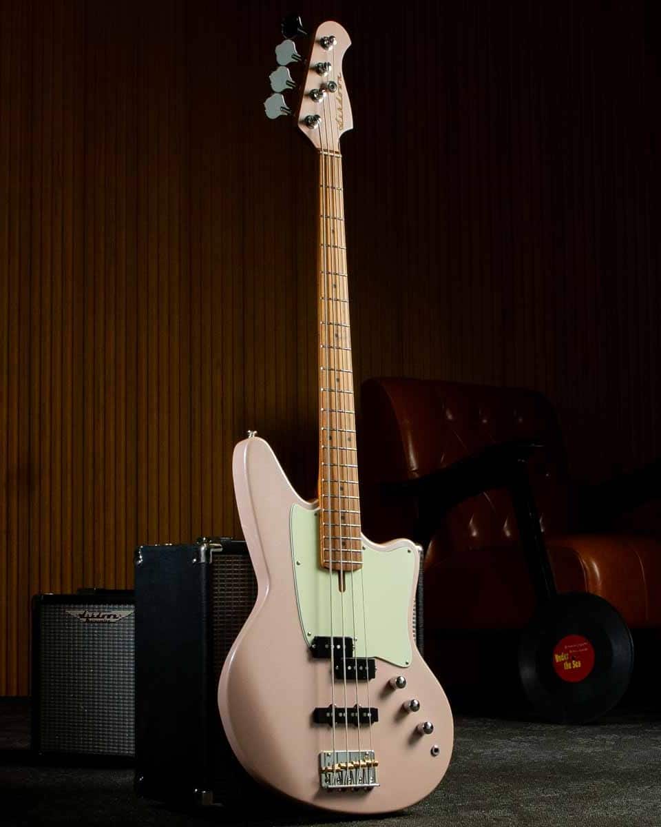 - Sharp Style: Available in impressive color options like Shell Pink, Sparkle Ice Blue, and Onyx Green Metallic, with a matching headstock. This bass creates a standout visual presence on stage. The sound is as excellent as the look.