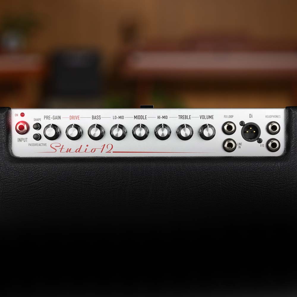 Ashdown Studio 12 มี Switch SHAPE ที่จะทำให้เสียงเบสของคุณคมชัดยิ่งขึ้น รองรับได้ทั้งเบสแบบ ACTIVE และ PASSIVE สามารถ LOOP Effect จากข้างนอกได้ หรือจะเปิดเพลง และซ้อมไปด้วยได้จากช่อง LINE IN ซ้อมแบบไม่รบกวนใครได้ด้วยช่อง HEADPHONES รวมถึง DI OUT ที่สามารถส่งสัญญาณตรงไปที่ MIXER หรือ Audio Interface ได้