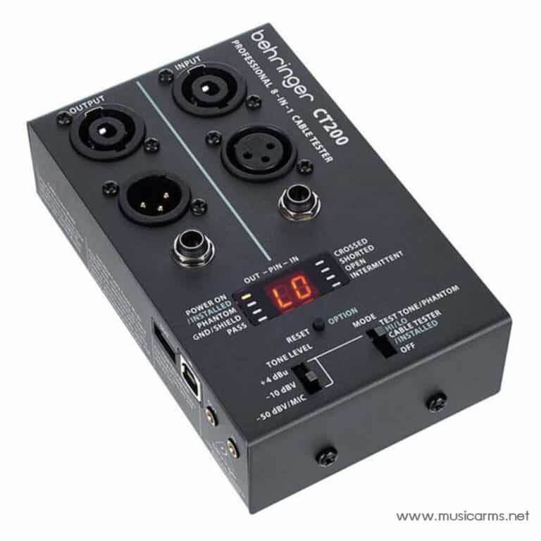 Behringer CT200 Cable Tester เครื่องทดสอบสายเคเบิล เหมาะสำหรับวิศวกรเสียงและนักดนตรีที่ต้องการทดสอบสายเคเบิลทุกประเภทที่ใช้ในสภาพแวดล้อมการบันทึกหรือการแสดงสด ขั้วต่อที่ใช้ร่วมกันได้ ได้แก่ XLR, Speakon, TRS (1/4”, 1/8”), RCA, RJ45, MIDI และ USB มีโหมดการวินิจฉัย 3 โหมดแก่ผู้ใช้ ได้แก่ การทดสอบสายเคเบิล เครื่องทดสอบสายเคเบิลที่ติดตั้ง หรือโทนเสียง ผู้ทดสอบจะตรวจสอบความต่อเนื่อง การเชื่อมต่อที่ขาดช่วงหรือลัดวงจร และการมีอยู่ของพลัง Phantom และแผงป้องกันที่ต่อสายดิน CT200 แบบพกพาทำงานโดยใช้แบตเตอรี่ AA จำนวน 2 ก้อน (จำหน่ายแยกต่างหาก) และช่วยให้การตั้งค่าของคุณดำเนินไปได้อย่างราบรื่น