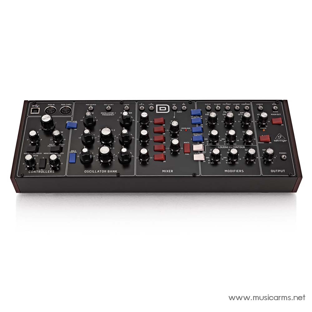 Behringer Model D ซินธิไซเซอร์กึ่งโมดูลาร์อเนกประสงค์ เป็นซินธิไซเซอร์อะนาล็อกแบบเดสก์ท็อปที่ทรงพลัง มอบเสียงอะนาล็อกขนาดใหญ่พร้อมความเป็นไปได้ในการสังเคราะห์ที่ไม่รู้จบ ออสซิลเลเตอร์หนาสามตัวให้เสียงที่เต็มอิ่ม อบอุ่น และลึกผ่านรูปคลื่นต่างๆ พร้อมสวิตช์อ็อกเทฟและการควบคุมการดีจูนเพื่อเพิ่มความหนาให้กับเสียงของคุณ อะนาล็อกซินธ์ของ Behringer D มีตัวกรองความถี่ต่ำ/สูงที่เลือกได้ พร้อมการควบคุมสำหรับปรับแต่งและขึ้นรูปเสียงของคุณ