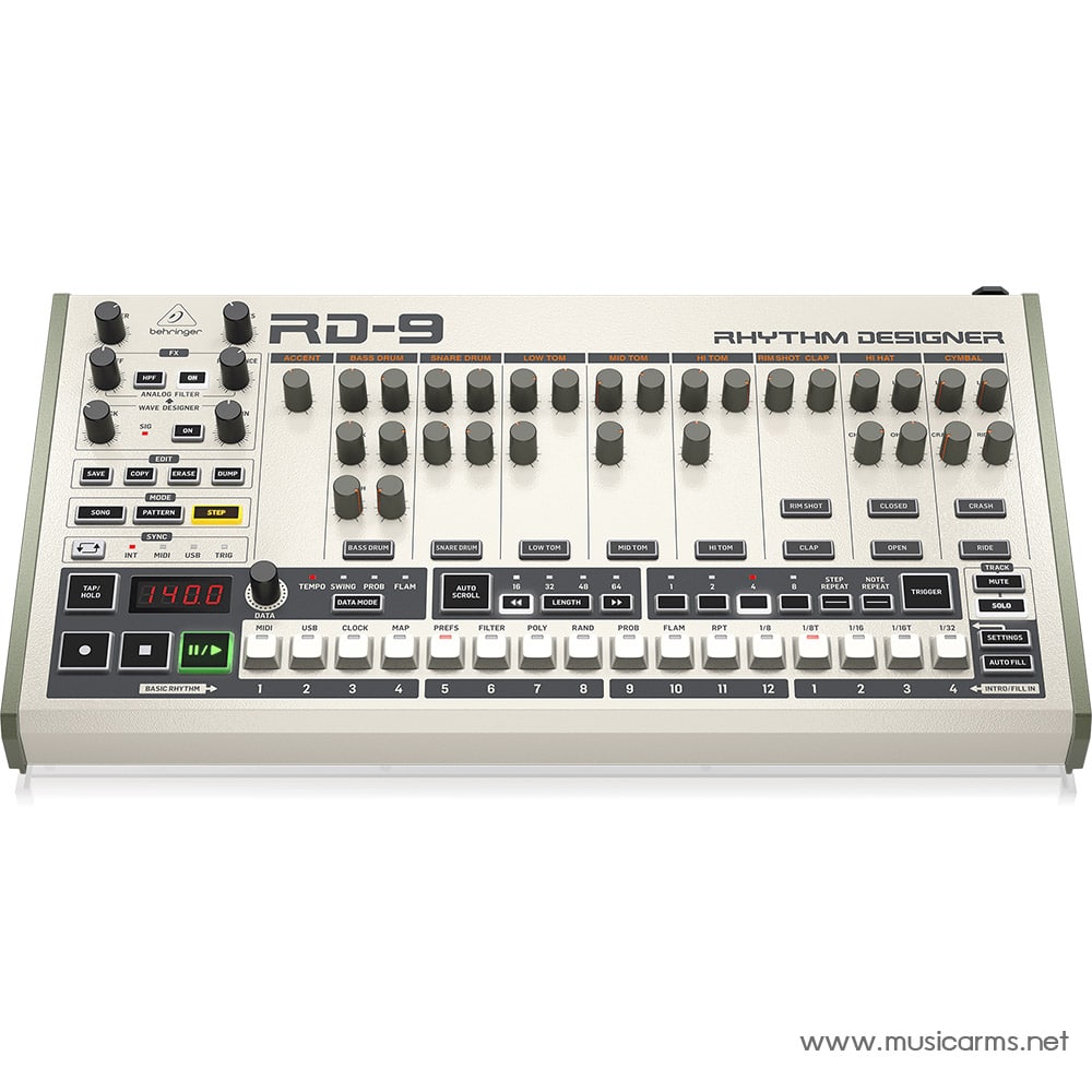 Behringer RD-9 Drum Machine ปลุกชีวิตใหม่ให้กับหนึ่งในเครื่องตีกลองที่โดดเด่นที่สุดเท่าที่เคยมีมา ยังคงรักษาคุณสมบัติและวงจรทั้งหมดที่ทำให้ต้นฉบับได้รับความนิยมอย่างมาก โดยยังคงรักษาคุณสมบัติดั้งเดิมเอาไว้ โดยมีตัวเลือกเพิ่มเติมบางประการสำหรับฟังก์ชันการทำงานแห่งศตวรรษที่ 21 มีการเชื่อมต่อที่ขยายกว้างขึ้น รวมถึง MIDI I/O และพอร์ต USB เพื่อให้คุณสามารถใช้สำหรับการผลิตเพลงและการใช้งานสดได้