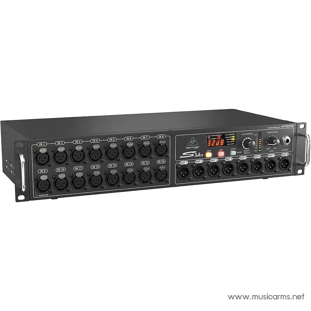 Behringer S16 เป็นกล่องสเตจดิจิตอลที่มีความยืดหยุ่นสูงในการเชื่อมต่อไมโครโฟน, เครื่องดนตรี และอุปกรณ์อื่นๆ บนเวทีไปยังคอนโซลมิกซ์และอุปกรณ์บันทึกเสียง ด้วยอินพุต XLR จำนวน 16 ช่องที่มาพร้อมกับพรีแอมป์ไมโครโฟนคุณภาพระดับพรีเมียมและพลังงานแฟนทอม 48V S16 รองรับการใช้งานตั้งแต่ไมโครโฟนร้องเพลงไปจนถึงกีตาร์อะคูสติก พร้อมทั้งให้คุณภาพเสียงที่บริสุทธิ์ สัญญาณดิจิตอลสามารถส่งออกได้ผ่านทาง ADAT optical outputs จำนวน 2 ช่อง ซึ่งเหมาะสำหรับการเชื่อมต่อกับมิกเซอร์ดิจิตอลและอุปกรณ์อินเตอร์เฟซในการบันทึกเสียงหลายแทร็คหรือมิกซ์เสียงด้านหน้า สำหรับการส่งสัญญาณดิจิตอลแบบมีความหน่วงต่ำไปยังคอนโซล S16 มาพร้อมกับพอร์ต Ultranet และการเชื่อมต่อ AES50 นอกจากนี้บนตัวสเตจบ็อกซ์ยังมีแจ็คสำหรับตรวจสอบสัญญาณและเอาต์พุตหูฟังสำหรับผู้แสดงบนเวที