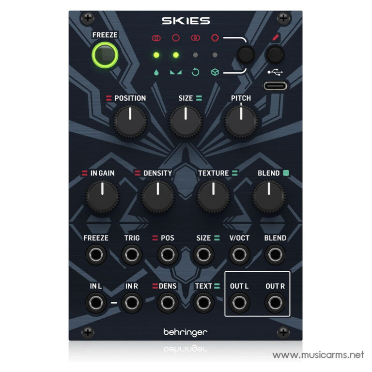 SKIES ใช้พื้นที่เพียง 18 HP บน Rack ซึ่งเป็นส่วนเสริมที่กะทัดรัดแต่ทรงพลังสำหรับระบบ Modular ใดๆ มันทำงานโดยใช้ไฟเลี้ยง Eurorack มาตรฐาน 12 โวลต์ และสามารถรวมเข้ากับทั้งสตูดิโอและการตั้งค่าการแสดงสดได้อย่างง่ายดาย การมีอินเทอร์เฟซ USB ที่แผงด้านหน้าช่วยให้การอัปเดตเฟิร์มแวร์ทำได้รวดเร็วและใช้งานง่าย ยืดอายุการใช้งานของโมดูลและทำให้คุณสมบัติใหม่ๆ ทันสมัยอยู่เสมอโดยไม่ต้องถอดชิ้นส่วน SKIES ได้รับการออกแบบมาเพื่อมอบประสิทธิภาพระดับมืออาชีพในขณะที่ยังคงเข้าถึงได้ง่ายและบำรุงรักษาง่าย