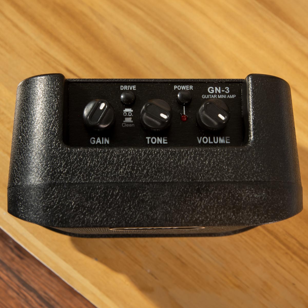 Belcat mini GN-3 has a slot for inserting 9 Volt batteries, making portability more convenient. No need to carry many cables. Just plug your electric guitar into this tiny amp and enjoy music right away. Play anywhere, even in without electricity
