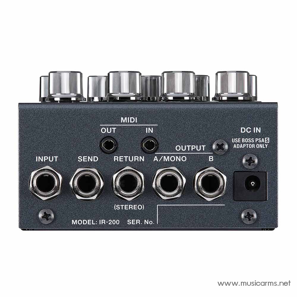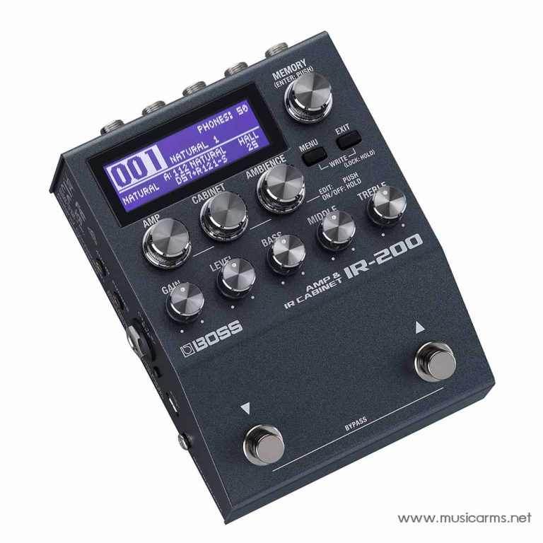 Boss IR-200 เอฟเฟคกีตาร์ประเภทจำลองเสียงแอมป์และตู้ IR ให้คุณภาพเสียงที่ยอดเยี่ยม แอมป์ระดับพรีเมียม โดยพร้อมเรียกใช้งานจากหน่วยความจำ 128 แบบได้ทันที รวมถึงสามารถจำลองเสียงตู้ IR ที่มีความละเอียดสูงกว่า 150 แบบจาก BOSS และ Celestion Digital อยู่บนเครื่อง และยังอัดแน่นไปด้วยเอฟเฟคสเตอริโอที่มีประโยชน์มากมายทั้ง modulation, delay และ reverb เมื่อคุณสร้างโทนเสียงแล้ว สามารถส่งไปยังสเตจแอมป์, House PA, ระบบบันทึกด้วยคอมพิวเตอร์ หรือหูฟังได้อย่างง่ายดาย