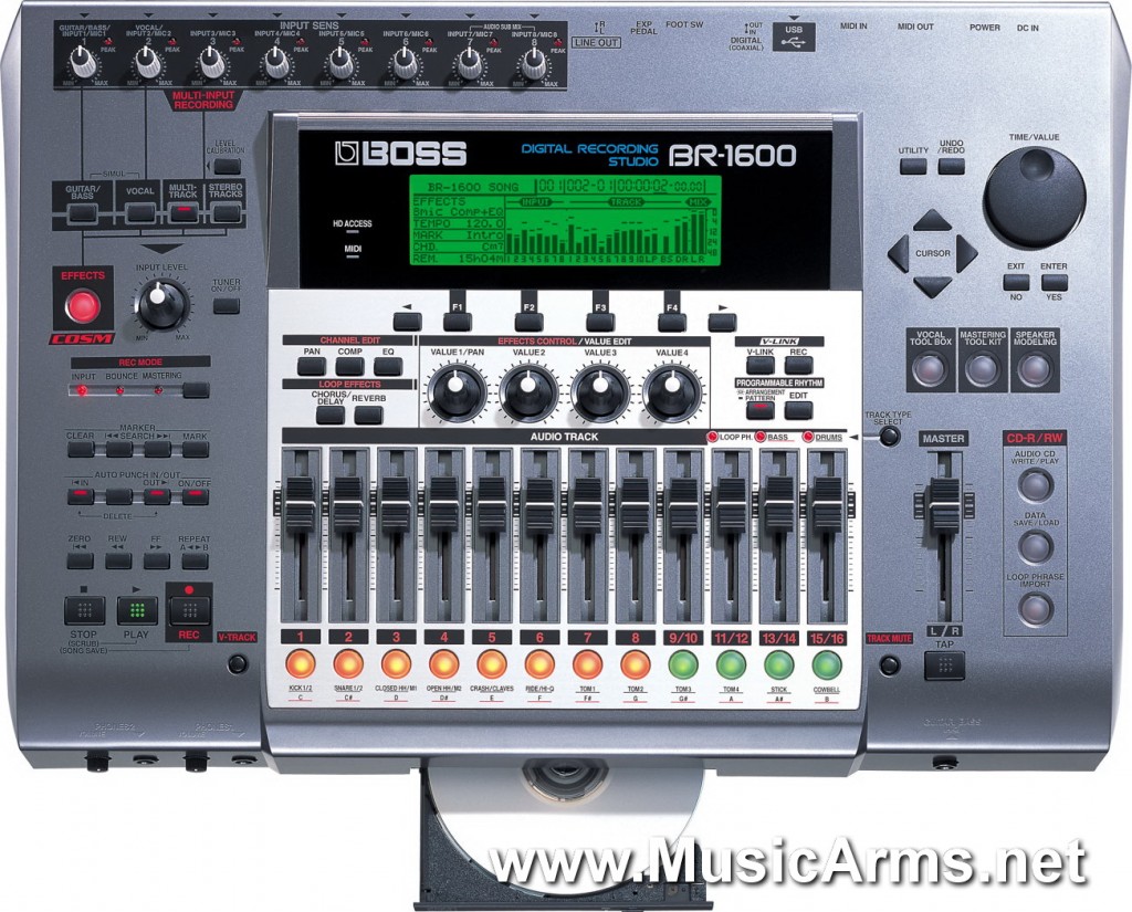 BR-1200CD Digital Recorder Boss – สามารถสร้างเสียงกีต้าร์แล้วบันทึกลงดิสได้ โดย BR-1200CD ทำให้คุณมีไอเดียในการสร้างเสียงได้อย่างง่ายดาย เพราะในตัว BR-1200CD เต็มไปด้วยเอฟเฟคและมีการจำลองเสียงแอมป์มาให้อีกด้วย โดยได้เสียงจาก COSM