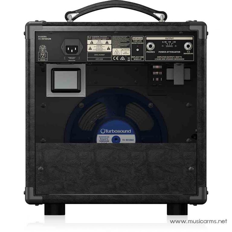 Bugera V5 Infinium แอมพลิฟายเออร์หลอดคอมโบขนาด 5 วัตต์ราคาไม่แพงที่ให้โทนเสียงวินเทจ ด้วยเทคโนโลยี Class-A และสร้างขึ้นจากพื้นฐานของส่วนพลังงาน EL84 V5 มอบทุกสิ่งที่มือกีตาร์ต้องการ ด้วยตัวลดทอนกำลังเพื่อให้แน่ใจว่าเสียงสมบูรณ์แบบในทุกระดับเสียง ลำโพง Turbosound ขนาด 8 นิ้วให้โทนเสียงที่คมชัดและชัดเจน ในขณะที่ หลอด 12AX7 และ EL84 ให้เสียงแบบวินเทจอย่างแท้จริงพร้อมความสมดุลที่ดีของฮาร์มอนิกและการบีบตัวของหลอดที่เป็นธรรมชาติ นอกจากนี้ แอมป์ยังมีเสียงก้องที่มีความละเอียดสูงซึ่งช่วยให้ผู้เล่นสร้างซาวด์สเคปที่น่าทึ่งในขณะที่ช่วงของการควบคุมที่ทรงพลังให้ความสามารถในการปรับโทนเสียงที่ยอดเยี่ยม นอกจากนี้ Combo Amp ยังมีเทคโนโลยี Infinium Tube Life Multiplier ของ Bugera ซึ่งจะตรวจสอบและปรับแต่งหลอดแอมป์ ขยายอายุการใช้งานได้ถึง 20 เท่า และให้การเปลี่ยนหลอดที่ง่ายและรวดเร็ว