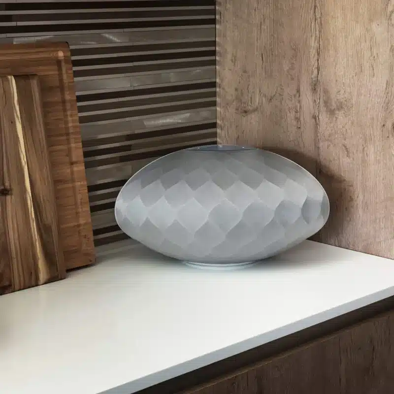 ตู้ที่มีเอกลักษณ์ รูปทรงสวยงามเข้ามุมกับทวีตเตอร์สองตัว ตัวขับเสียงกลางสองตัว และซับวูฟเฟอร์ เพื่อสร้างภาพสเตอริโอที่สมบูรณ์แบบ