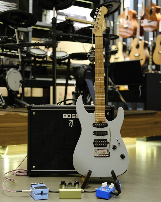 Charvel Pro Mod DK24 HSS กีต้าร์งานดีกับความพิเศษที่ให้ปิ๊กอัพมาทั้งแบบ Humbucking และ Single Coil บอดี้ไม้เอลเดอร์น้ำหนักเบา คอคาราเมลไรซ์เมเปิ้ลฟิงเกอร์บอร์ดเมเปิ้ล ลายไม้สวยงาม รุ่นนี้จะมี 24 เฟรตแบบ Jumbo โดยที่ให้ปิ๊กอัพมา 3 แบบ เป็นรุ่น Seymour Duncan® Custom Full Shred™ SH-10B, Seymour Duncan® Custom Flat Strat® SSL-6 Single-Coil และ Seymour Duncan® Custom Flat Strat® SSL-6 RWRP Single-Coil ซาวด์หนา ซาวด์บางครอบคลุมหมด พุ่งแรงในแบบชาวร็อค งานประกอบจัดว่าเนี๊ยบสมแบรนด์ เรื่องเสียงหายห่วง จนอยากให้มาลองด้วยตัวเอง เชื่อว่าหลายคนต้องชอบ