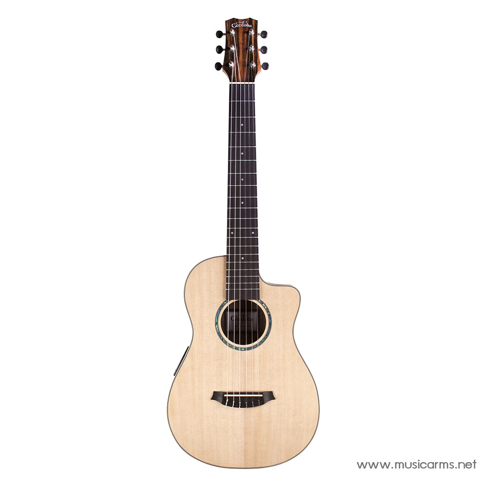 Say hello to the Mini II EB-CE — our popular Mini travel-size guitar, but slightly bigger and with an extended 580mm (22 7/8”) scale length so it tunes perfectly to Standard E. Despite its small profile, the Mini II has a deeper body depth which creates a well-rounded tone that is close to a full-size nylon string guitar. Built with a solid spruce top and striped ebony back and sides, the Mini II EB-CE is resonant with a clear, defined tone. Another stand-out feature is its cutaway for reaching the uppermost frets with ease and a Córdoba pickup with on-board tuner so you can amplify on the go.