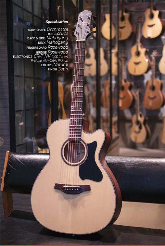 Crafter HT200 CE กีต้าร์สเป็คสวยๆจากแบรนด์ดังอย่าง Crafter บอดี้ทรงออเคสตร้ามีขาดเล็กเล่นง่าย ได้ไม้หน้าเป็นไม้สปรู๊ซให้เสียงใส นุ่มละมุน เสริมด้วยไม้ส่วนหลังและข้างเป็นไม้มะฮอกกานีที่ใช้กับกีต้าร์เกรดดีทั่วไป จึงได้ซาวด์ที่ลงตัวทั้งความหนาและความชัดเด้ง เช่นเดียวกับคอที่ใช้ไม้มะฮอกกานีอย่างดีแข็งแรงทนทาน ภาคไฟฟ้าเป็นรุ่น CR-T NV ที่มีจูนเนอร์ในตัวเป็นจอ LCD ขนาดเล็กมาให้ เอนกประสงค์และคุณภาพเยี่ยมแบบนี้ ไม่จับจองคงไม่ได้แล้ว