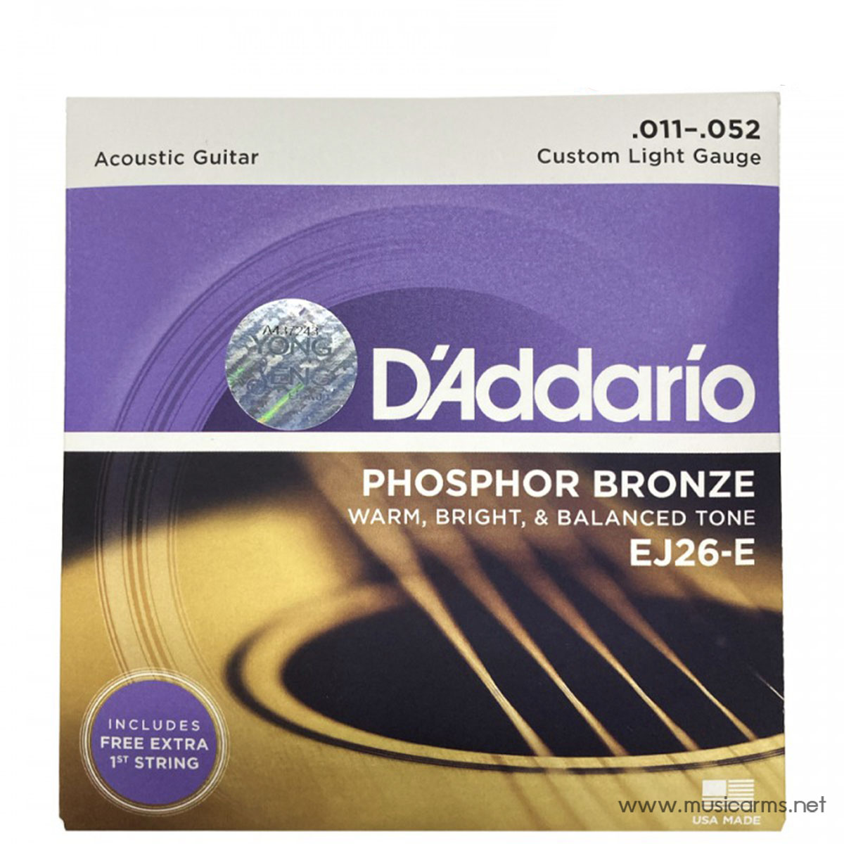 สายกีตาร์โปร่ง D’Addario EJ26-E เป็นรุ่นที่ได้รับความนิยมและคุ้นหูชาวไทยมาอย่างยาวนาน ด้วยขนาดสายที่ถูกออกแบบมาเป็นพิเศษเพื่อให้ผู้เล่นรู้สึกสบายมือมากที่สุด โดยเฉพาะอย่างยิ่งสำหรับผู้ที่เพิ่งเริ่มต้นเล่นกีตาร์ หรือผู้ที่กำลังมองหาสายกีตาร์ที่มีแรงตึงต่ำเพื่อลดอาการเจ็บนิ้ว ชุดสายนี้ให้ความรู้สึกในการเล่นที่ไม่แตกต่างจากกีตาร์ไฟฟ้ามากนัก ทำให้การฝึกซ้อมเป็นเรื่องง่ายและสนุกสนานยิ่งขึ้น ขณะเดียวกันก็ยังคงไว้ซึ่งบาลานซ์เสียงที่ยอดเยี่ยมและโทนเสียงที่กังวานสดใสตามมาตรฐานของ D’Addario