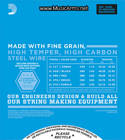 - 5-string version of D’Addario’s best selling bass guitar set