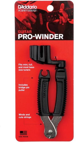Your all-in-one guitar tool! The Planet Waves Pro-Winder peg winder and clipper is all you need for fast string changes. The smooth action of the Pro-Winder will save your wrists when setting up a freshly stringed guitar. There’s also a convenient end-pin puller for acoustic guitars, and the built-in clipper takes care of string ends in a flash. It’s perfect for electric and acoustic guitar, bass, ukulele, banjo, mandolin, and virtually any other stringed instrument with tuning pegs. Set up your instrument fast with the Planet Waves Pro-Winder peg winder!