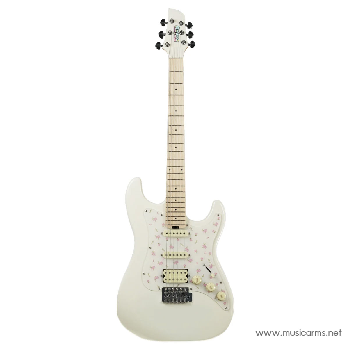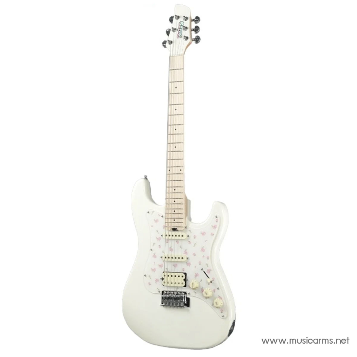 Daisy JENI เป็นกีตาร์ไฟฟ้าทรง Stratocaster ที่โดดเด่นไม่เหมือนใคร ด้วยการออกแบบที่เน้นความน่ารัก สดใส และมีสไตล์อันเป็นเอกลักษณ์ ทำให้เป็นตัวเลือกที่สมบูรณ์แบบสำหรับผู้เริ่มต้นเล่นกีตาร์ไฟฟ้า หรือผู้ที่กำลังมองหากีตาร์ไฟฟ้าที่มีลุคหวานๆ และทันสมัย คุณสมบัติที่ทำให้ JENI แตกต่างอย่างชัดเจนคือ **ปิ๊กการ์ดลายดอกไม้** ที่เพิ่มเสน่ห์ด้านรูปลักษณ์ ขณะที่องค์ประกอบด้านวัสดุและฮาร์ดแวร์ก็ถูกคัดสรรมาอย่างดีเพื่อให้มั่นใจว่าสามารถใช้งานได้จริงและให้เสียงที่มีคุณภาพ บอดี้ทำจากไม้ Poplar น้ำหนักเบาช่วยให้เล่นได้นานโดยไม่เมื่อยล้า ส่วนคอทำจากไม้ Maple ทรง “C” ที่จับถนัดมือพร้อมฟิงเกอร์บอร์ด Maple รัศมี 9.5 นิ้ว มอบสัมผัสที่รวดเร็วและเล่นคล่องมือ ระบบปิ๊กอัพแบบ HSS (Humbucker-Single-Single) ทำให้กีตาร์รุ่นนี้สามารถสร้างโทนเสียงที่หลากหลาย ตั้งแต่เสียงใส คมชัดของ Single Coil ไปจนถึงเสียงหนาและทรงพลังของ Humbucker ที่ตำแหน่งบริดจ์ เหมาะกับการเล่นได้แทบทุกแนวเพลง ทำให้ Daisy JENI เป็นการผสมผสานที่ลงตัวระหว่างแฟชั่นและฟังก์ชันการใช้งานที่ยอดเยี่ยม