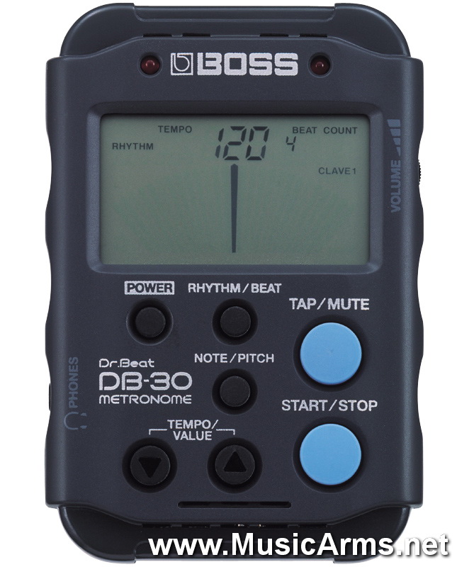DB-30 Tuners/Metronomes Boss – มันเป็นเมโทรนอมที่ขนาดเล็กเหมาะกับการพกพา จะช่วยให้นักดนตรีในการฝึกซ้อมอย่างมาก และยังสามารถปรับได้หลายรูปแบบจังหวะ จึงเหมาะสำหรับนักดนตรีทุกคนเลยทีเดียว