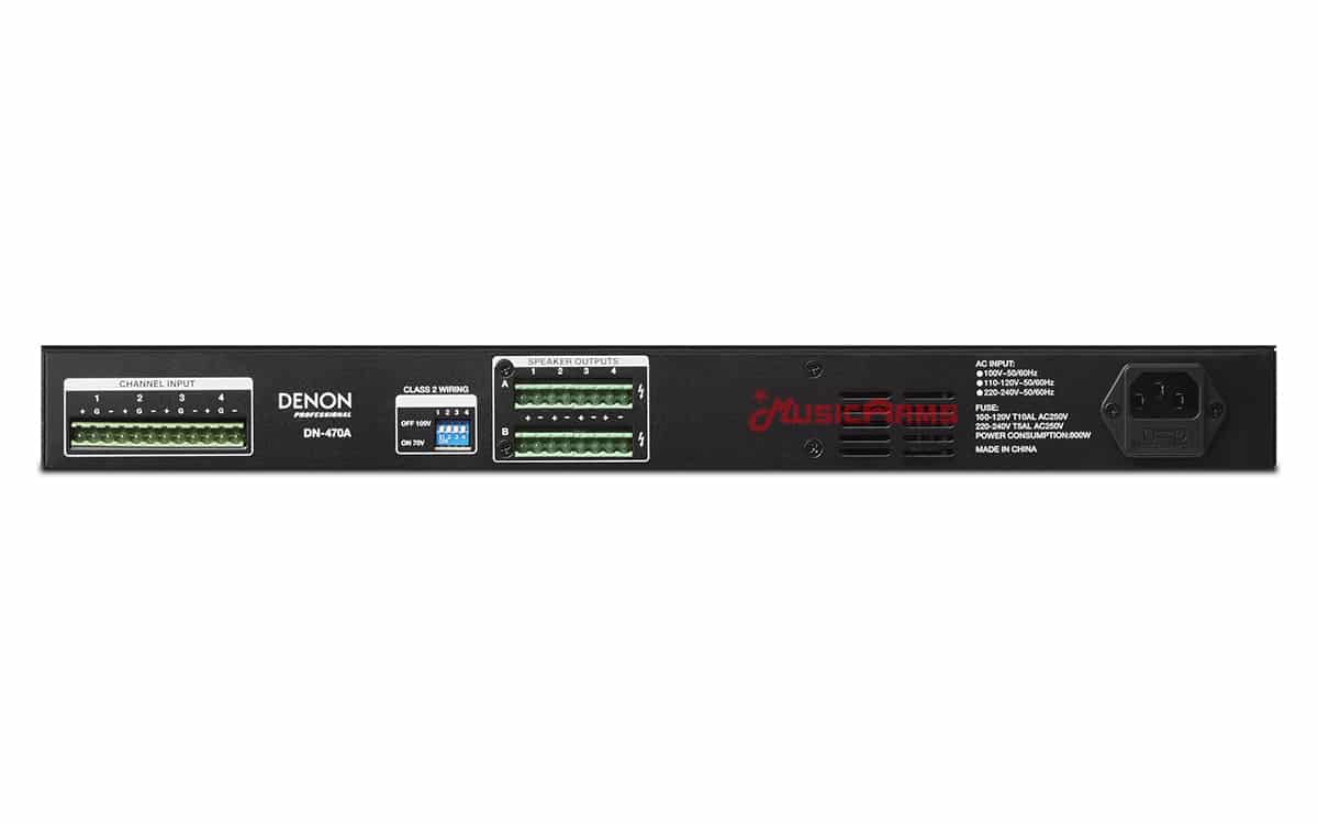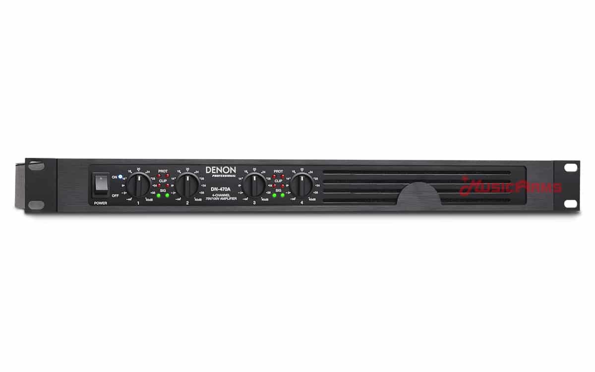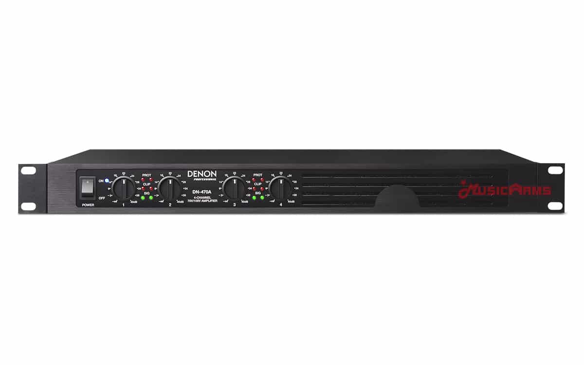 The DN-470A 4-Channel 70V/100V Amplifier is designed for contractor/install applications, and only for installed speaker systems requiring 70V/100V inputs. This very versatile, one rack space, 120W per channel amplifier has built-in short-circuit protection, and LED indicators for signal present, clipping status and thermal interruption on the front panel. Engineered strictly for the distibution of multiple 70V/100V speaker systems over long cable runs, such as in-ceiling speakers, surface-mount speakers and paging horns.