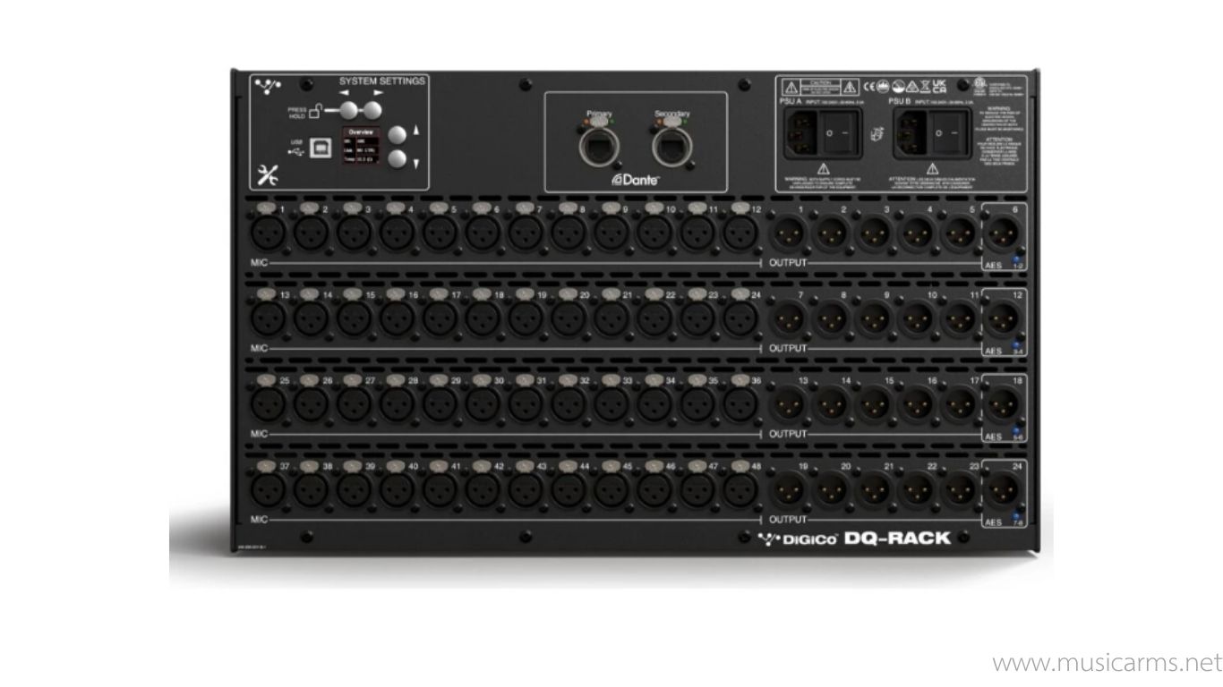 DQ-Rack ได้รับการออกแบบให้เป็น stage box รุ่นใหม่ที่รองรับระบบ AoIP (Dante) — เพิ่มทางเลือกให้กับผู้ใช้งาน DiGiCo ที่ต้องการระบบติดตั้งแบบ audio-over-Ethernet หรือใช้งานกับ AV infrastructure ที่มีอยู่ โดยที่ยังคงความคุ้นเคยของคอนโซล DiGiCo